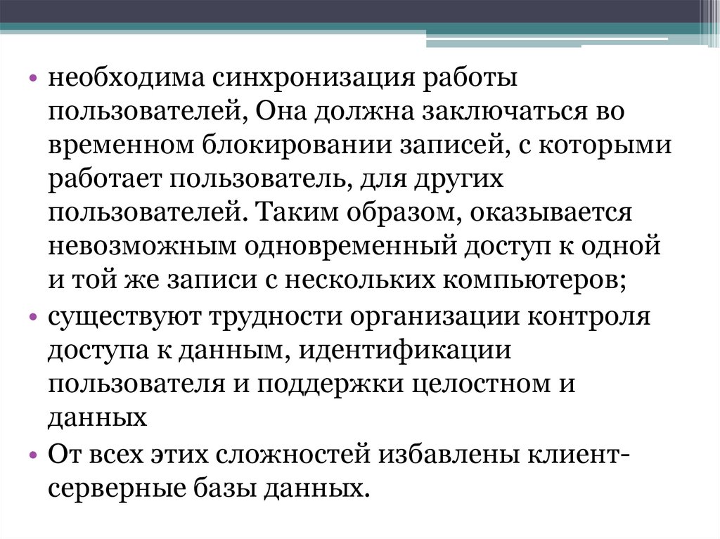 • необходима синхронизация работыпользователей, Она должна заключаться во