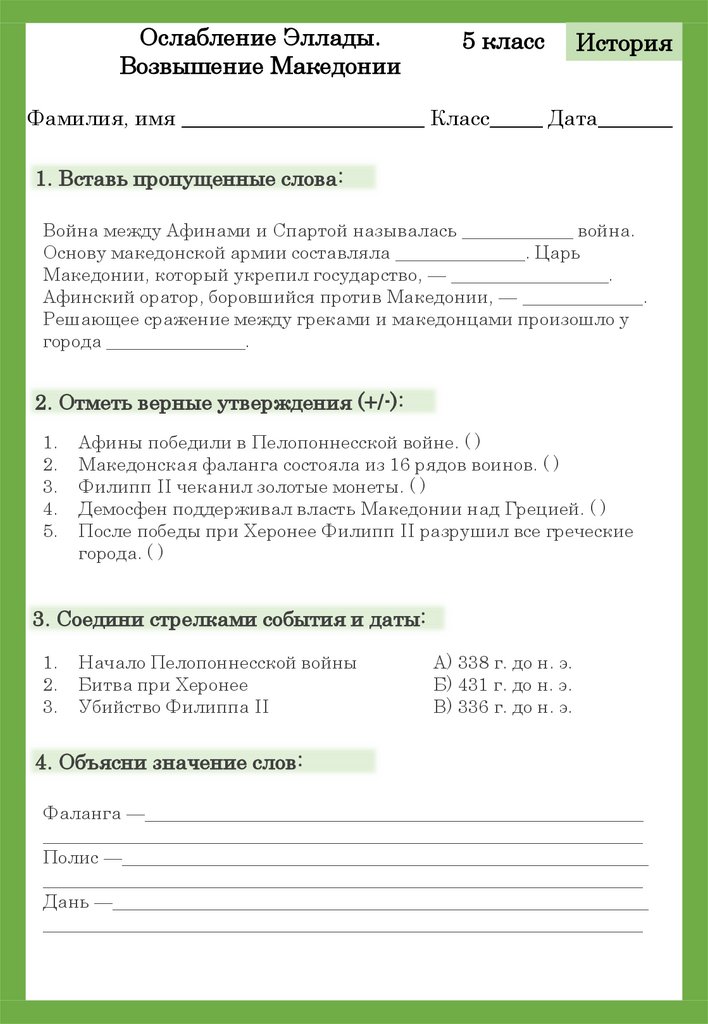 1. «Царь Македонии, создатель мощной армии» — ________________