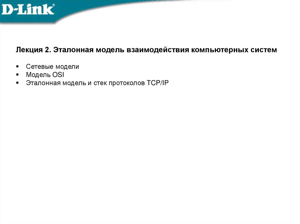 Лекция 2. Эталонная модель взаимодействия компьютерных системСетевые модели