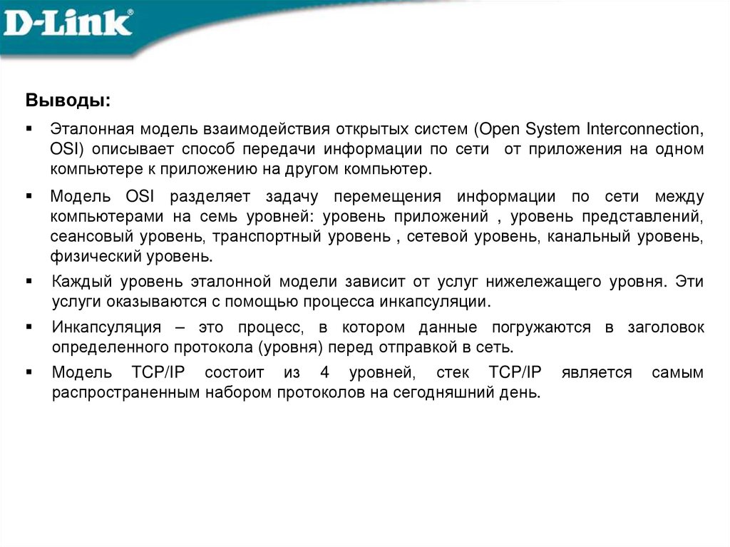 Выводы:Эталонная модель взаимодействия открытых систем (Open System Interconnection,
