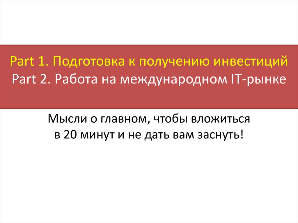 1. Part 1. Подготовка к получению инвестиций Part 2. Работа на международном IT-рынке