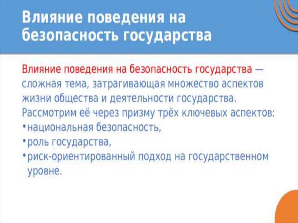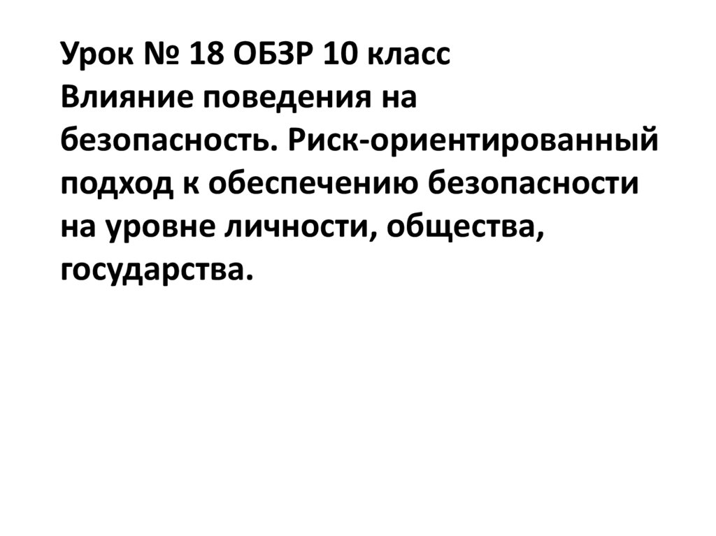 1. Урок № 18 ОБЗР 10 класс Влияние поведения на безопасность. Риск-ориентированный подход к обеспечению безопасности на уровне
