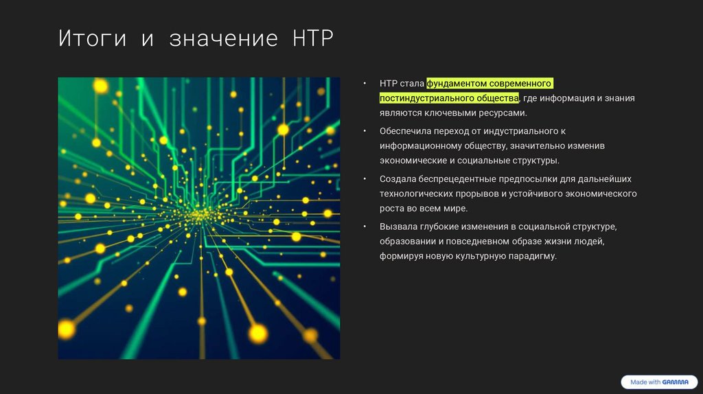 Итоги и значение НТРНТР стала фундаментом современного