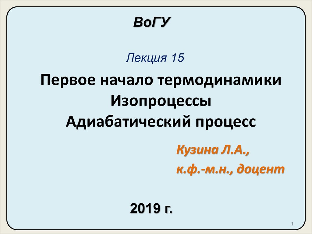1. Первое начало термодинамики Изопроцессы Адиабатический процесс