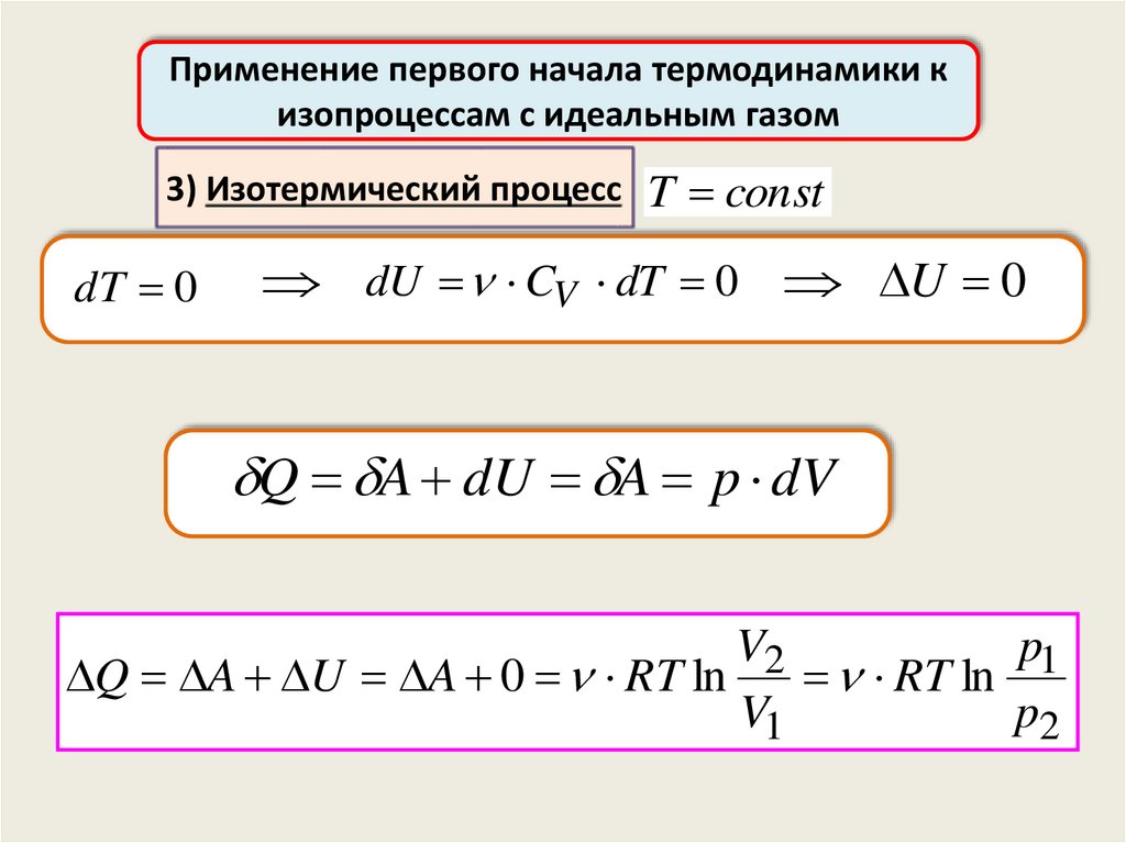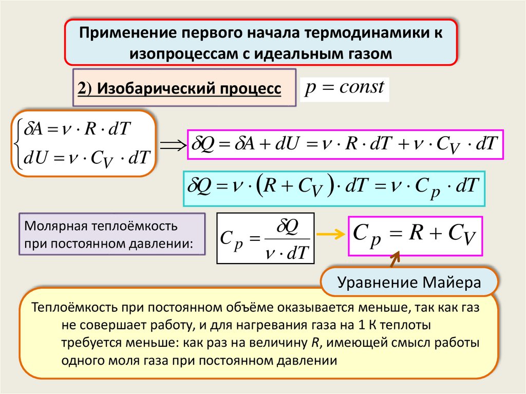Применение первого начала термодинамики кизопроцессам с идеальным газом