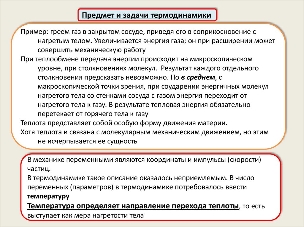 Предмет и задачи термодинамикиПример: греем газ в закрытом сосуде, приведя его в соприкосновение с