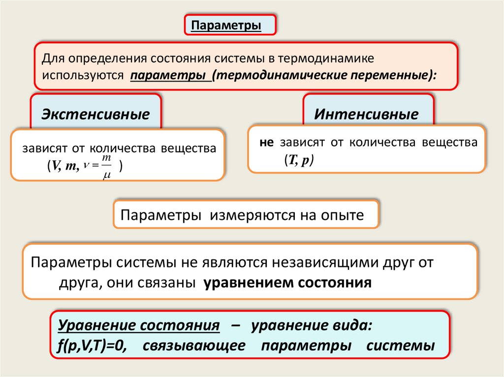ПараметрыДля определения состояния системы в термодинамике