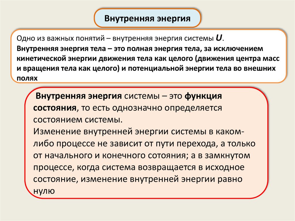 Внутренняя энергия тела – это полная энергия тела, за исключением