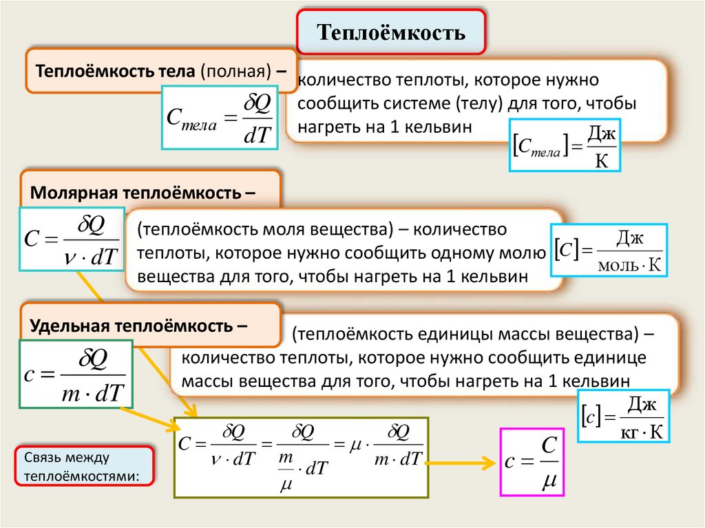 Свойства вещества – теплоёмкость, температурные коэффициенты