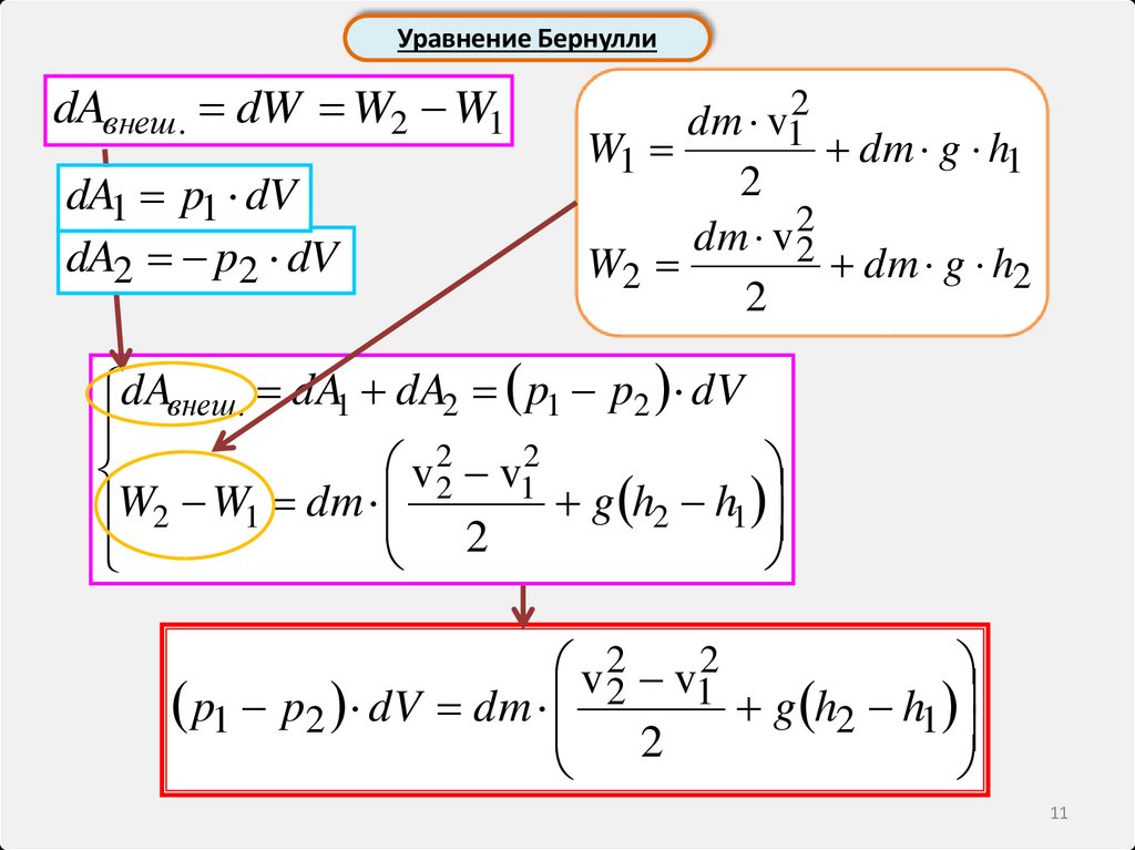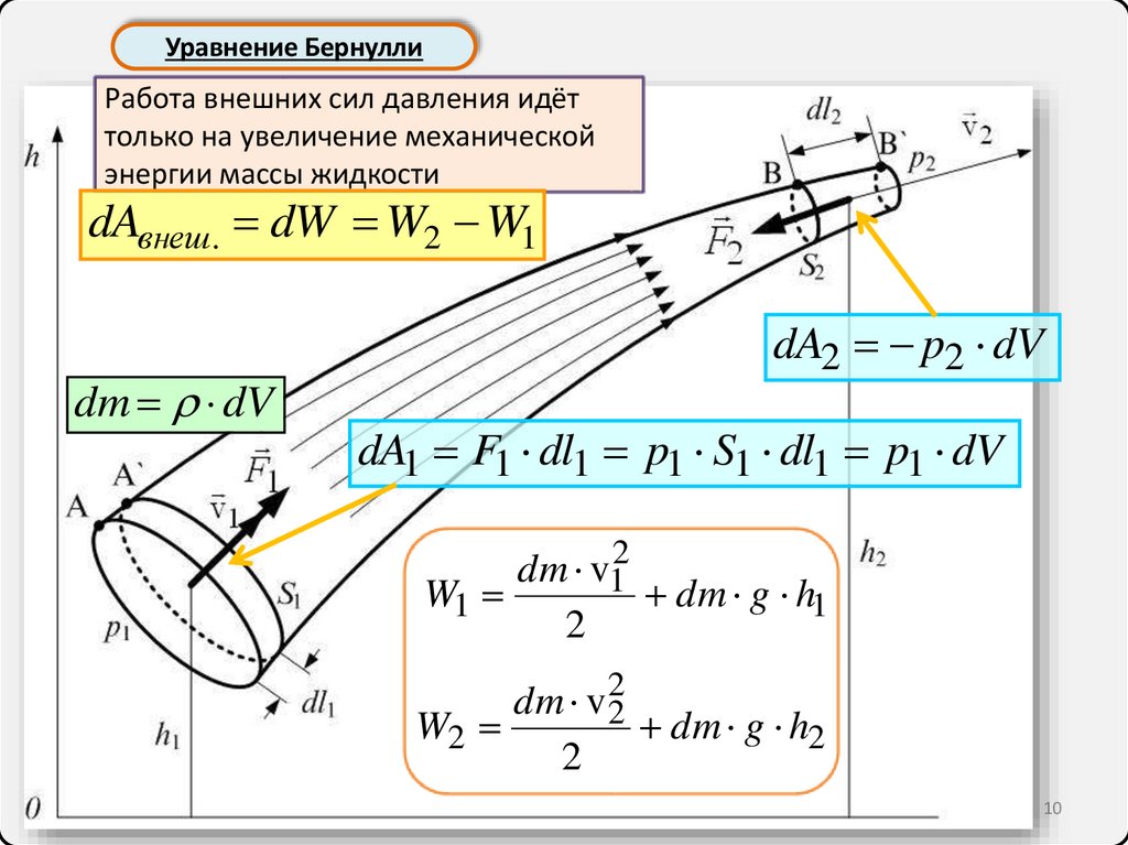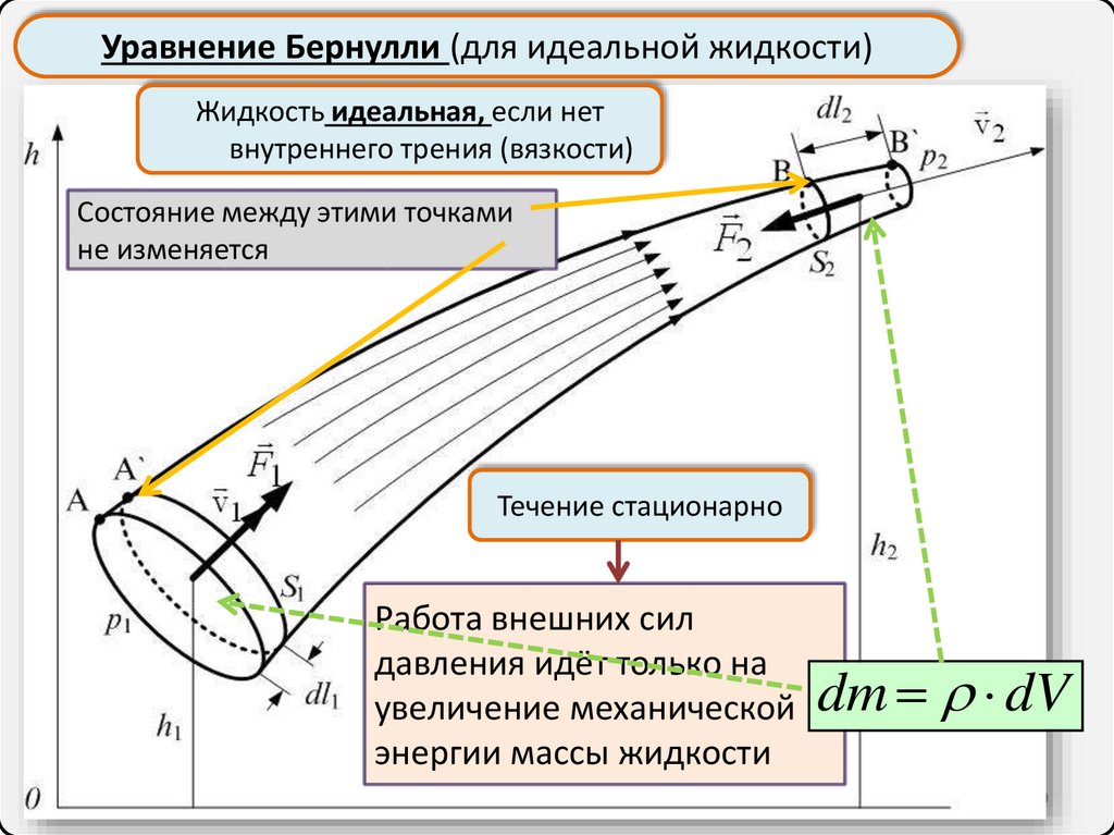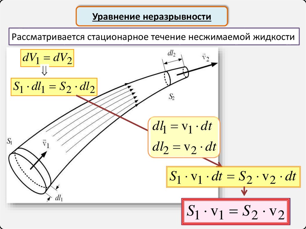Если течение стационарно, объёмный расход в любом сечении трубки