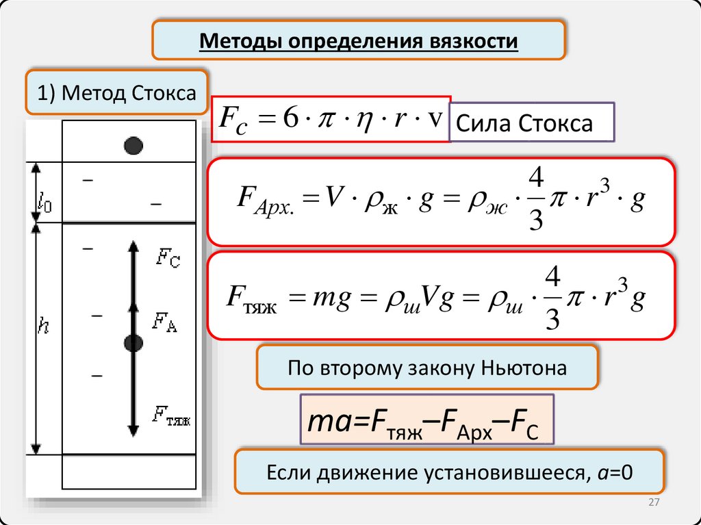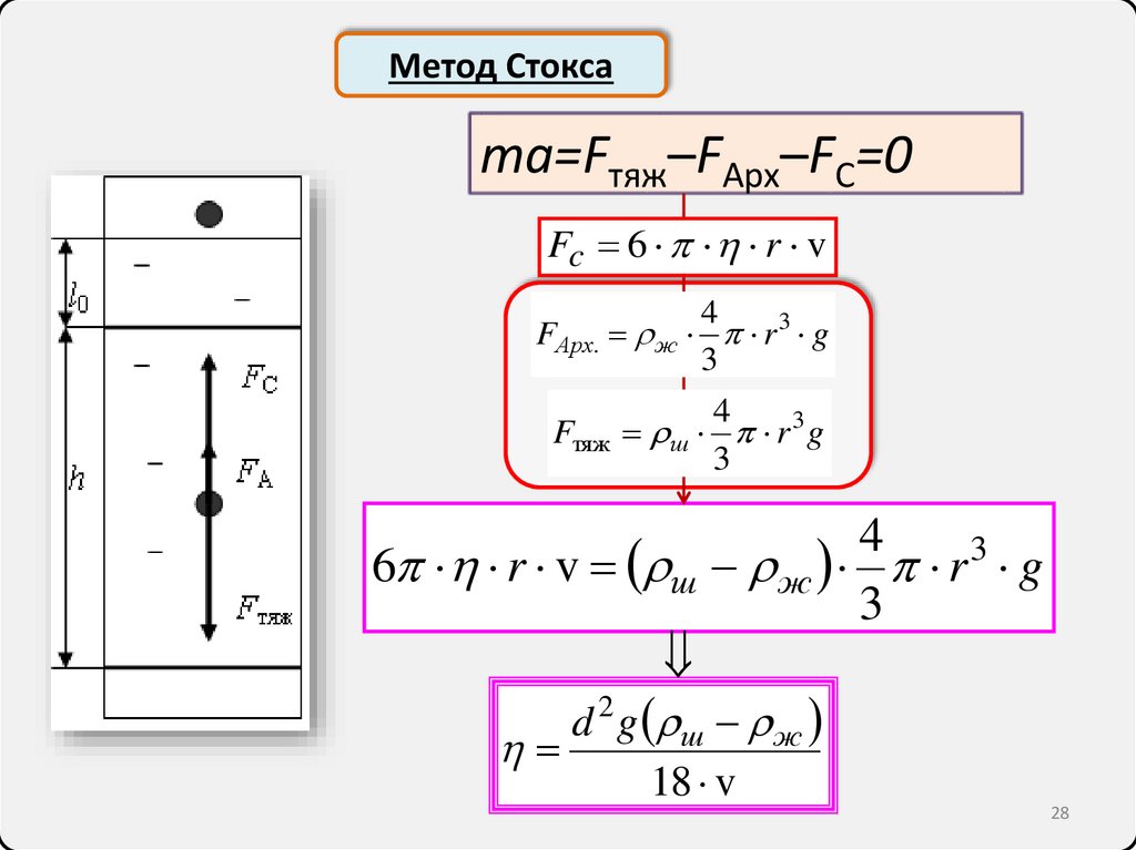 Метод Стоксаma=Fтяж–FАрх–FС=0