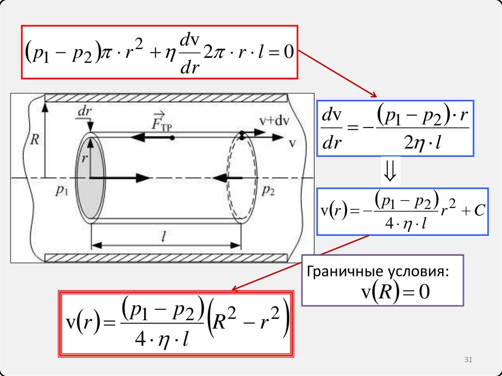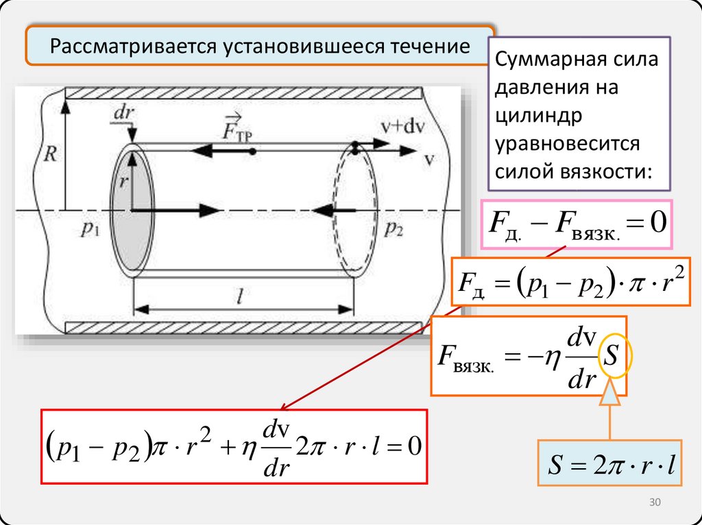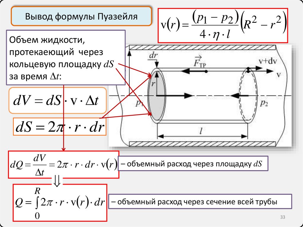 Q 2 r v r dr – объемный расход через сечение всей трубы