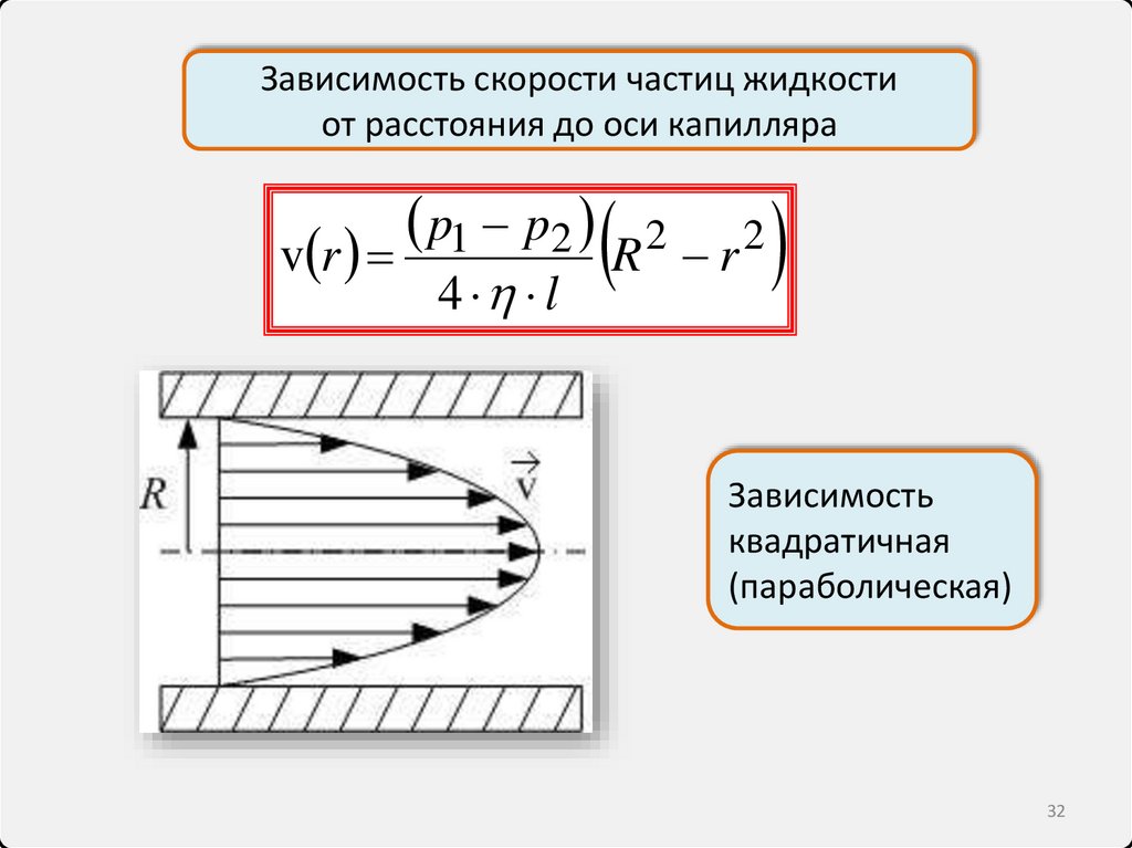 Зависимость скорости частиц жидкостиот расстояния до оси капилляра