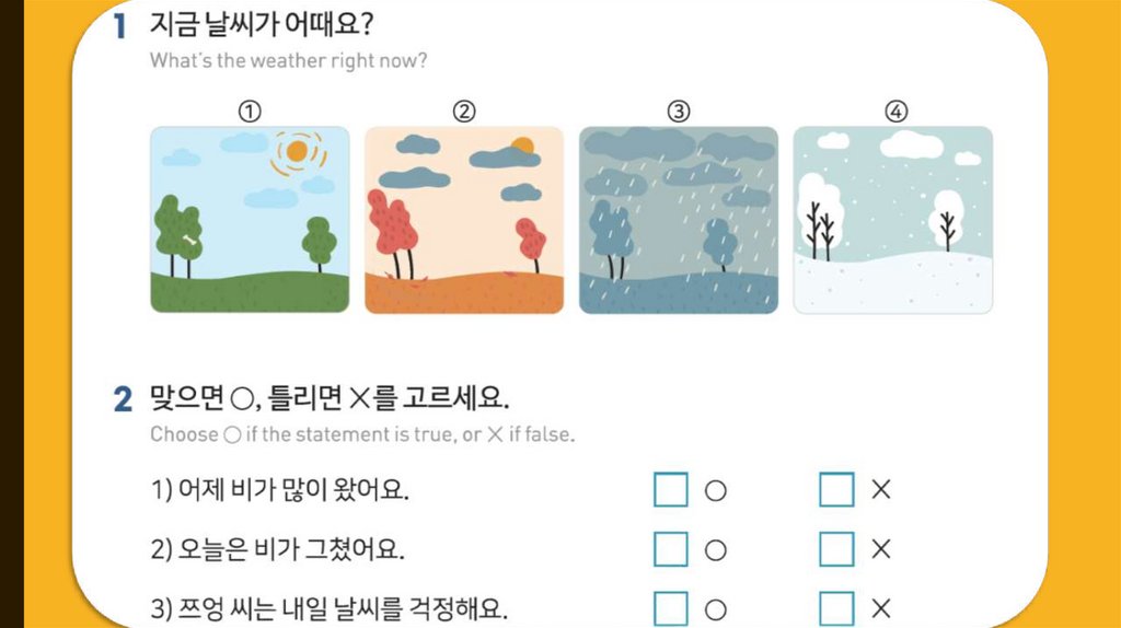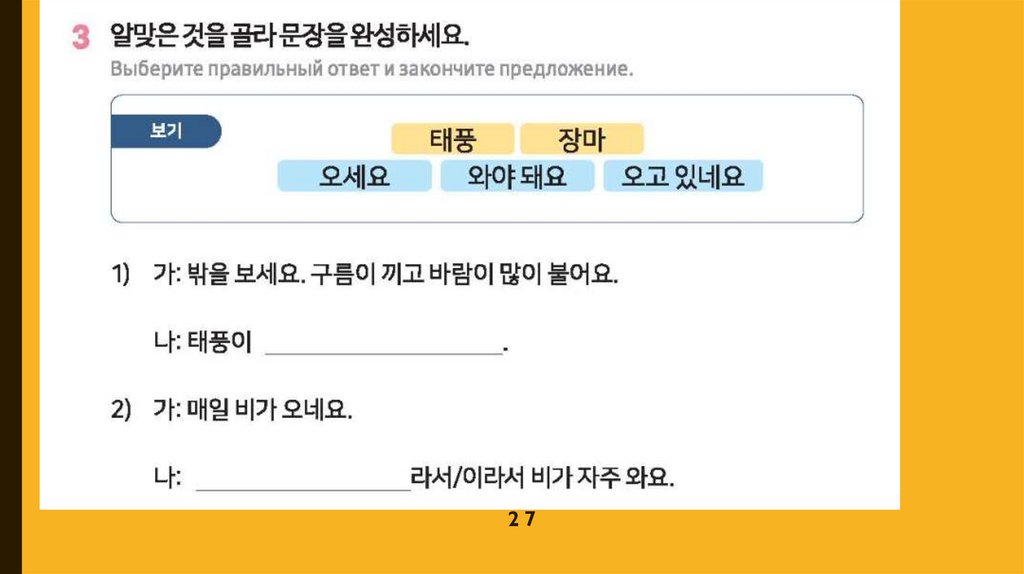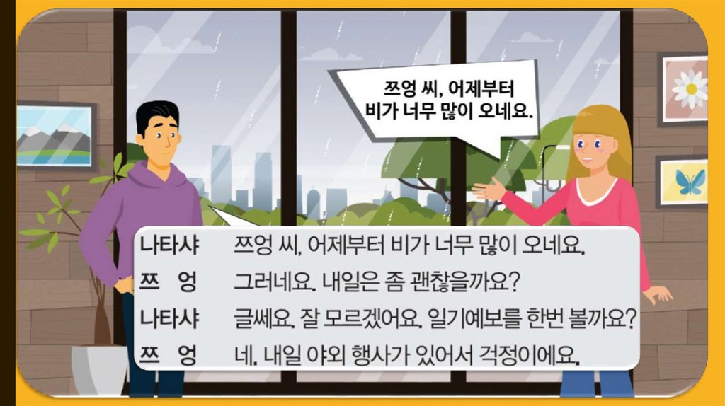 4.Тайфун наступил. Ветер сильный и дождь идет.
