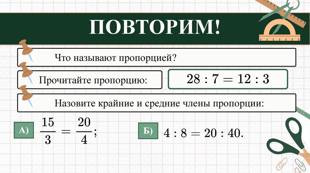 ПОВТОРИМ!Что называют пропорцией?
