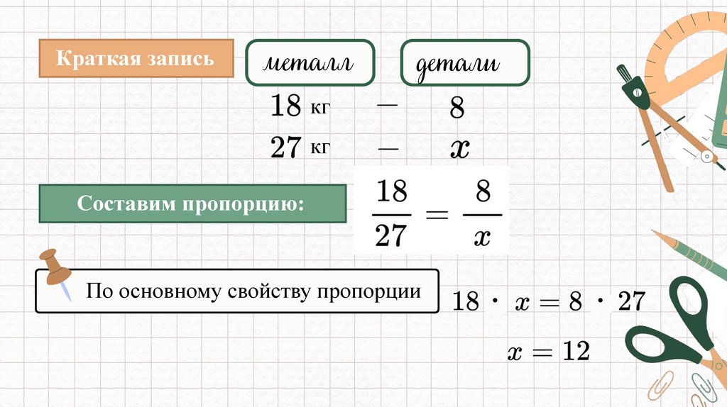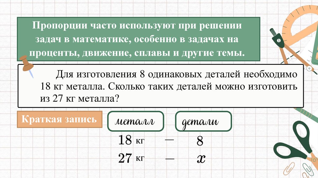 Пропорции часто используют при решениизадач в математике, особенно в задачах на