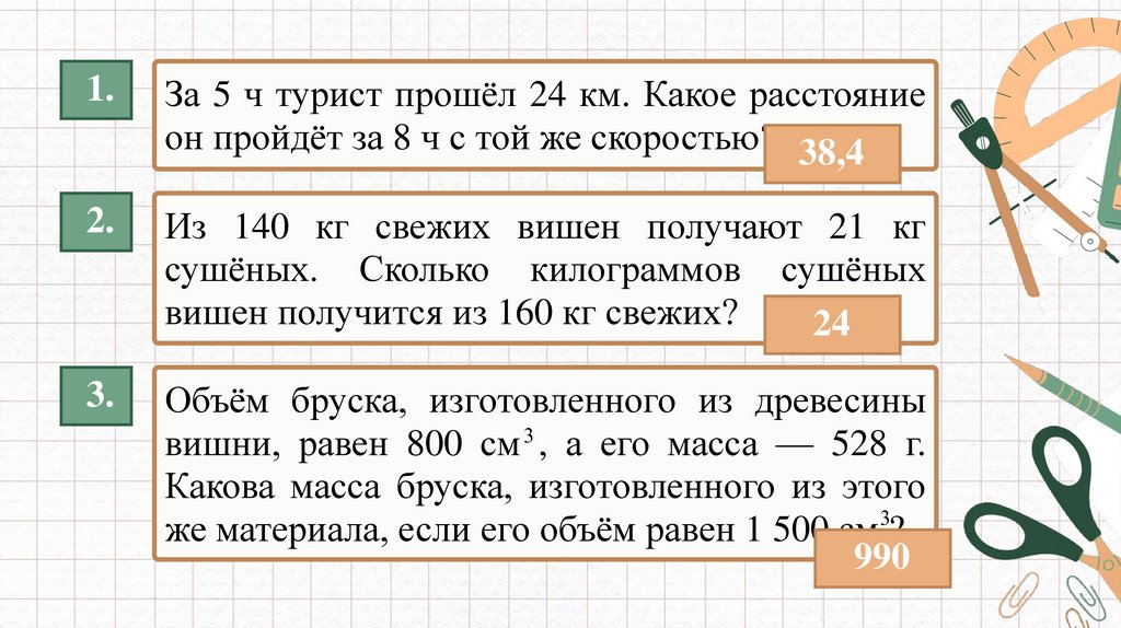 1.За 5 ч турист прошёл 24 км. Какое расстояние