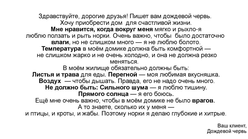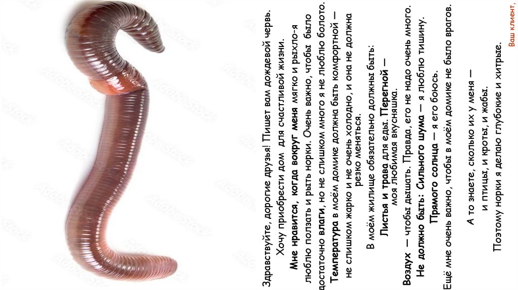 Здравствуйте, дорогие друзья! Пишет вам дождевой червь.