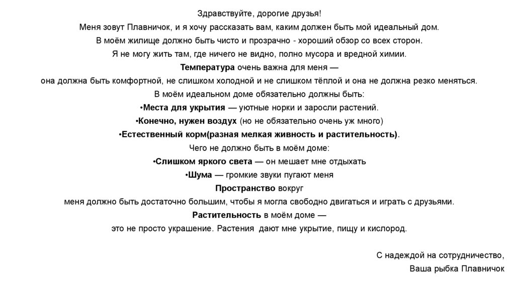 Меня зовут Плавничок, и я расскажу вам, каким должен