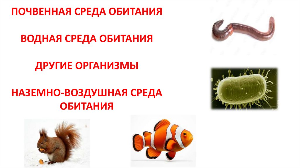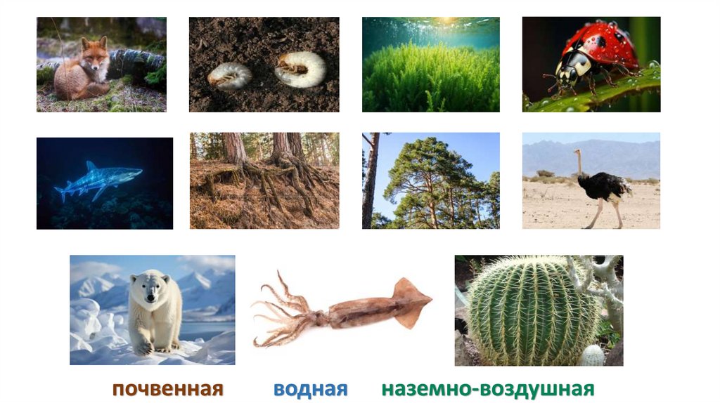 ПОЧВЕННАЯ СРЕДА ОБИТАНИЯВОДНАЯ СРЕДА ОБИТАНИЯ