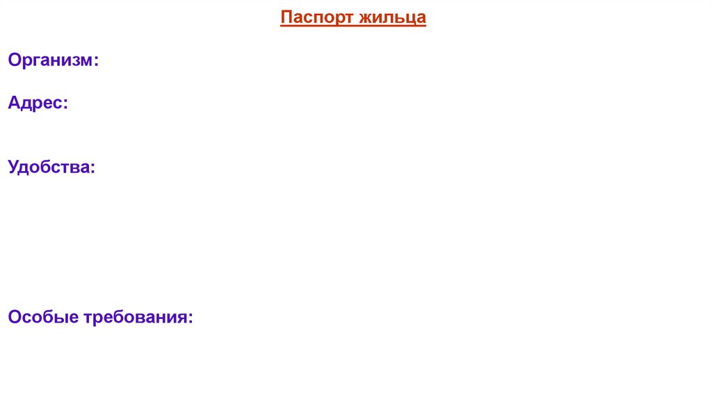 Паспорт жильцаОрганизм: