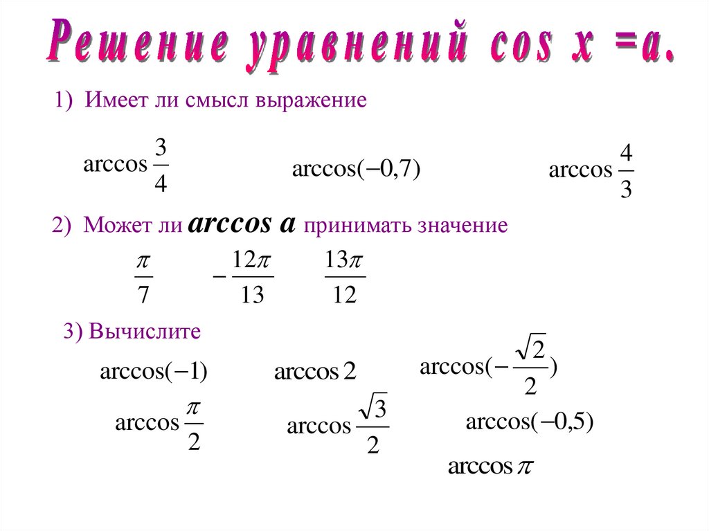 2) Может ли arccos a принимать значение