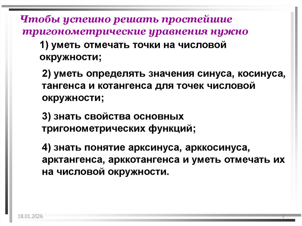 4) знать понятие арксинуса, арккосинуса,