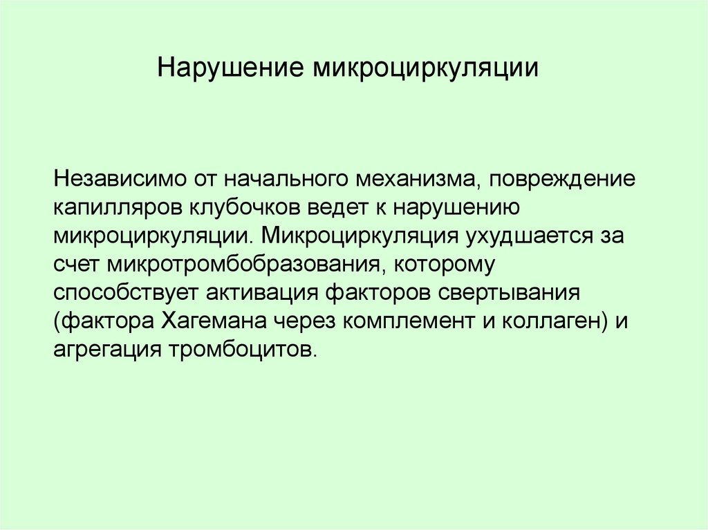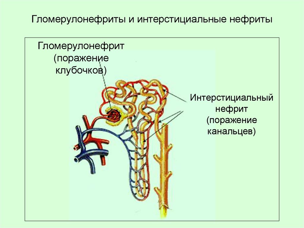 к одинаковым последствиям: нарушению клубочковой фильтрации и появлению
