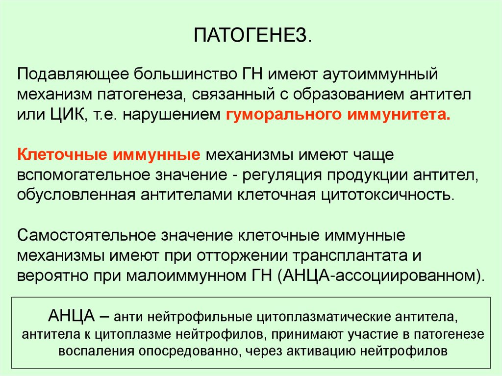 ПАТОГЕНЕЗ.Подавляющее большинство ГН имеют аутоиммунный