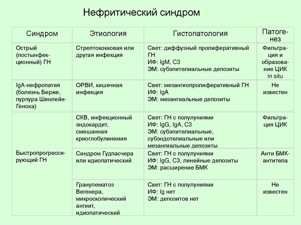 Нефритический синдромЭтиология