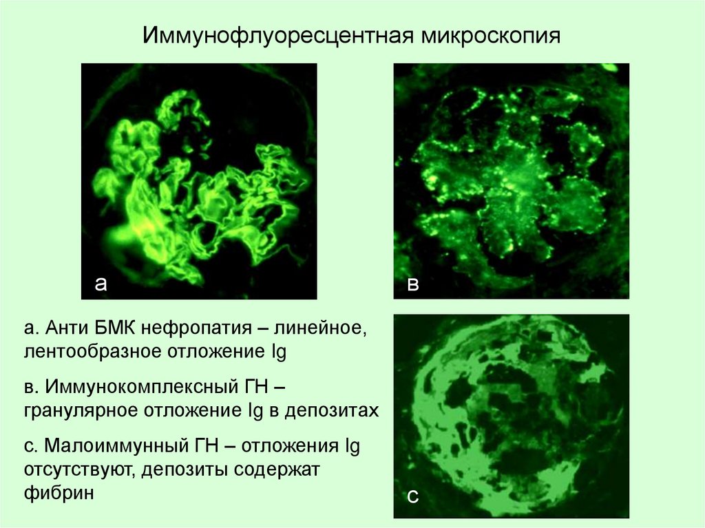 а. Анти БМК нефропатия – линейное,