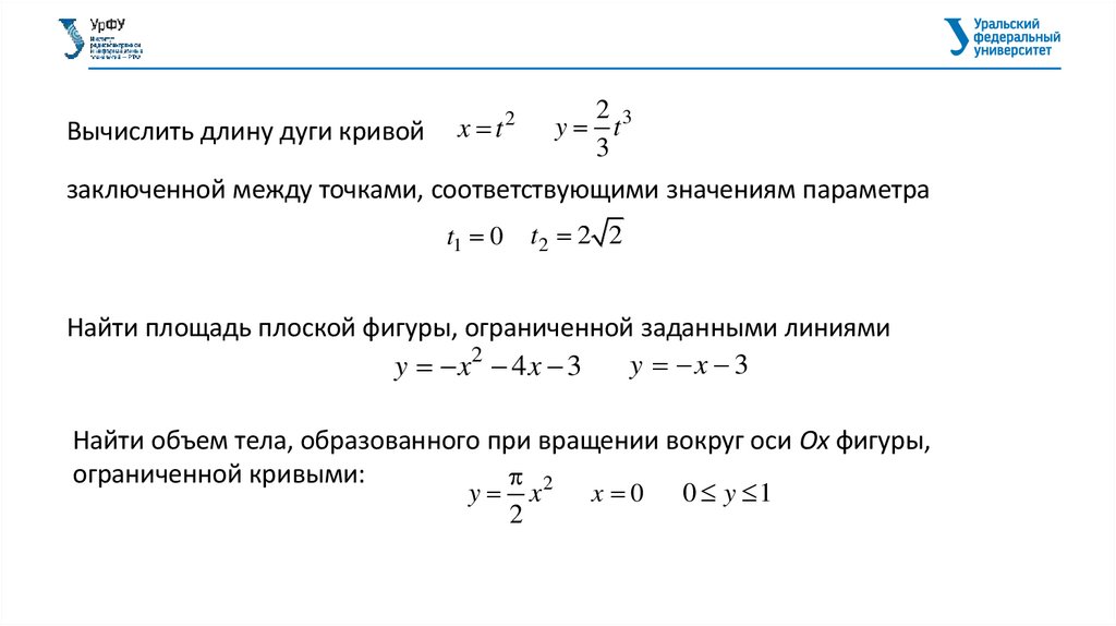 Вычислить длину дуги кривойx t2