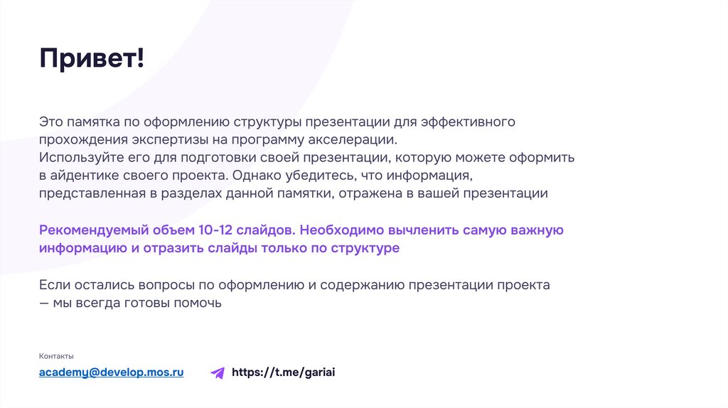 Привет!Это памятка по оформлению структуры презентации для эффективного