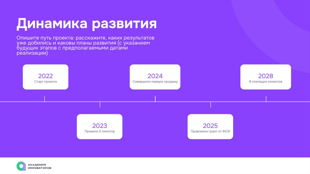 Динамика развитияОпишите путь проекта: расскажите, каких результатов