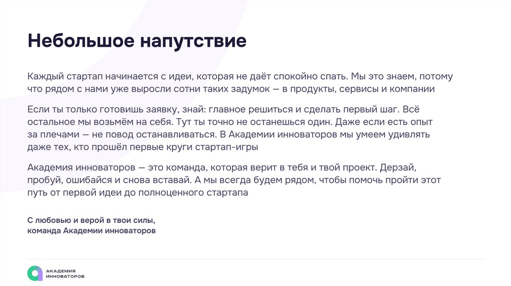 Академия инноваторов — это команда, которая верит в тебя и твой проект. Дерзай,