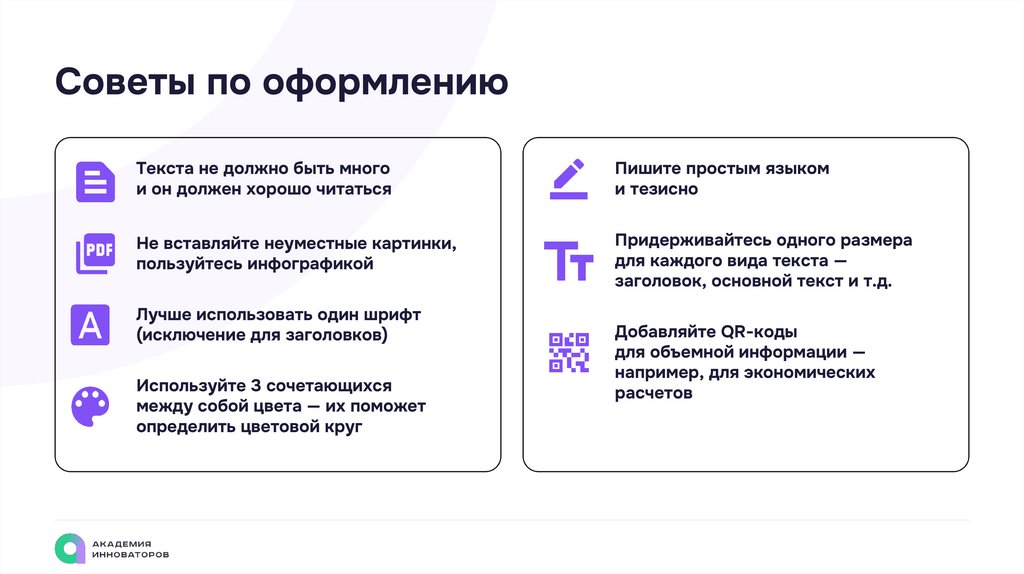 Советы по оформлениюТекста не должно быть много