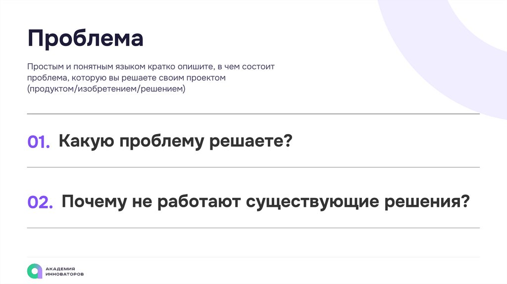 ПроблемаПростым и понятным языком кратко опишите, в чем состоит