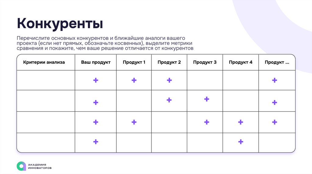 сравнения и покажите, чем ваше решение отличается от конкурентов