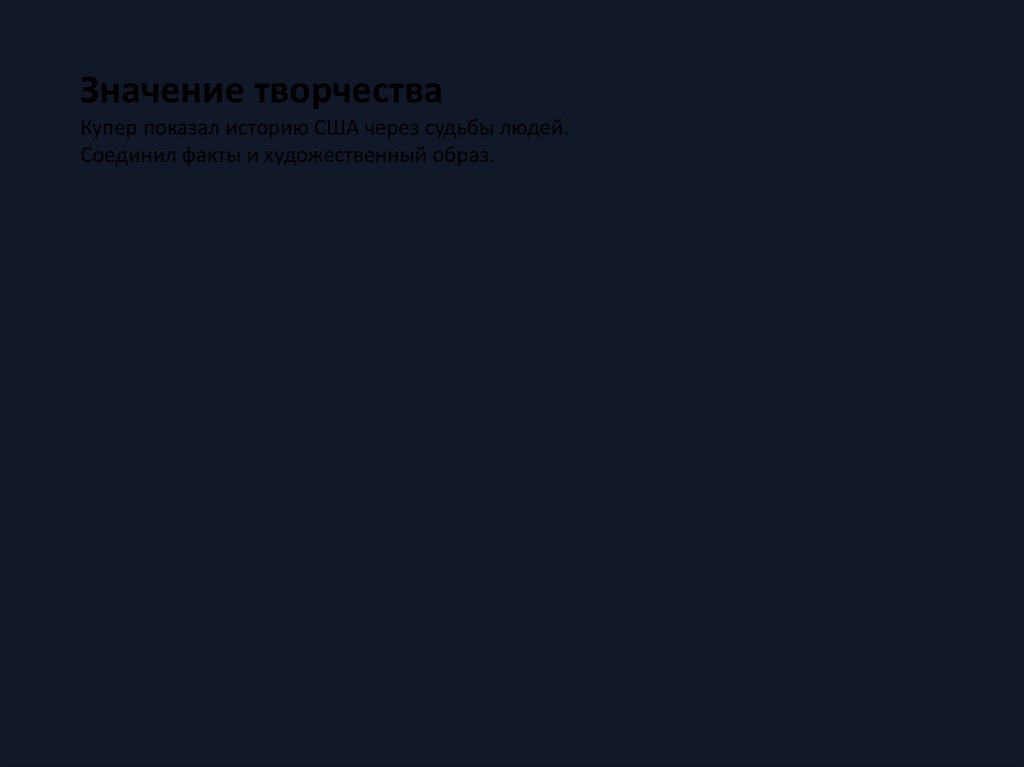 Значение творчестваКупер показал историю США через судьбы людей.