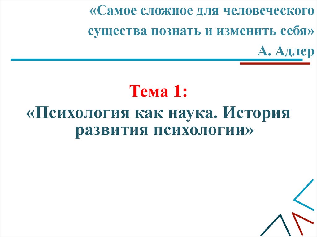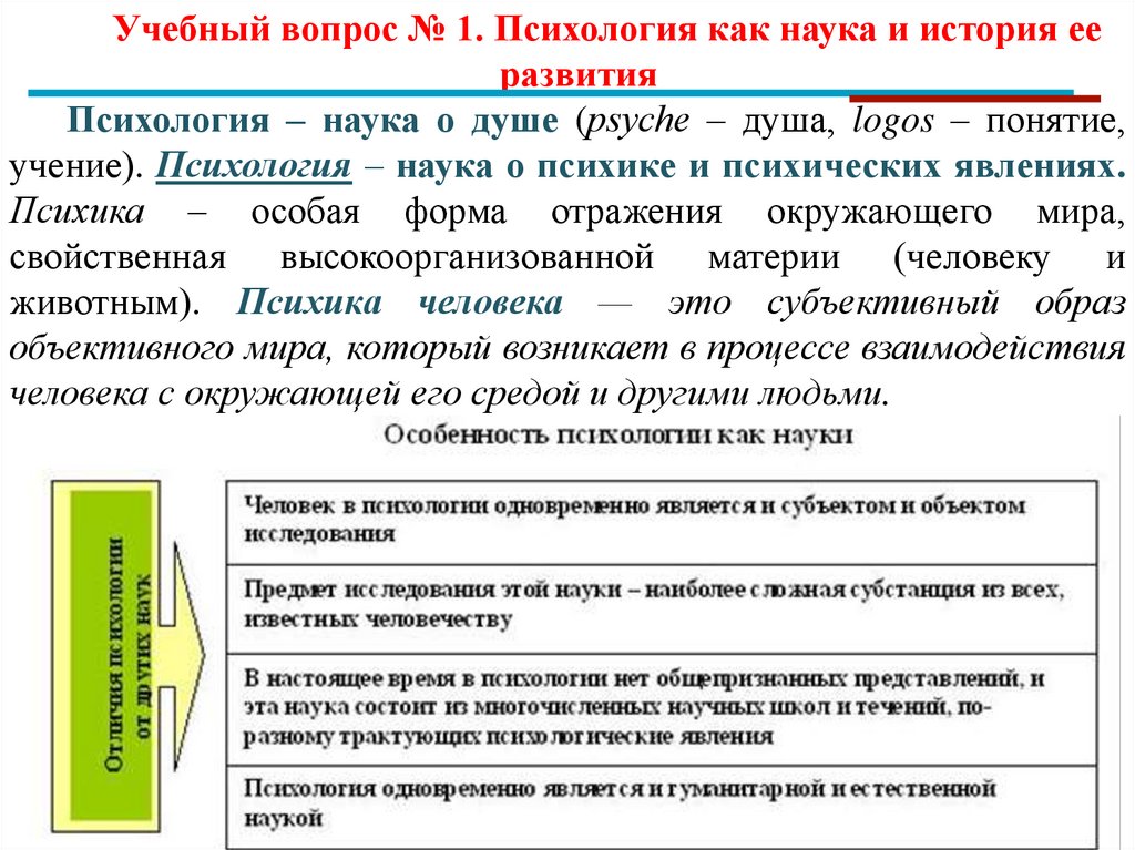 Учебный вопрос № 1. Психология как наука и история ееразвития