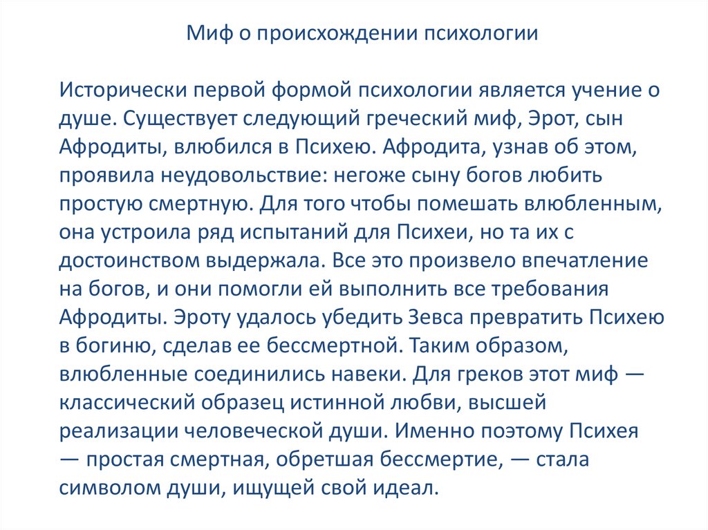 Миф о происхождении психологииИсторически первой формой психологии является учение о