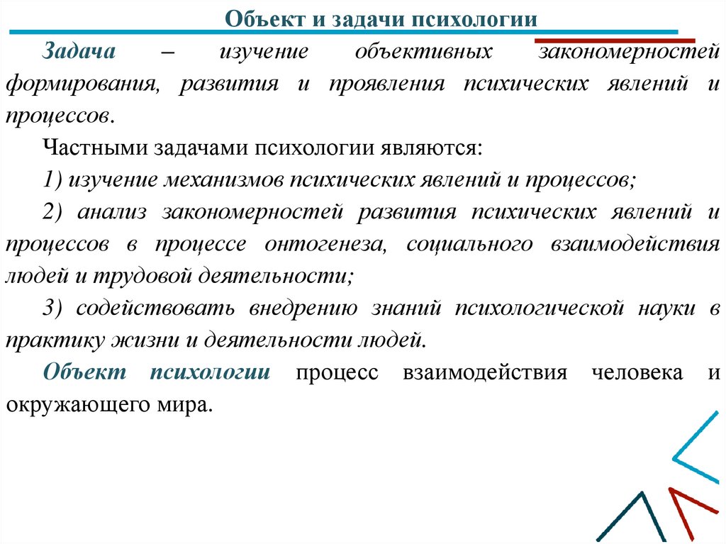 Объект психологии процесс взаимодействия человека и