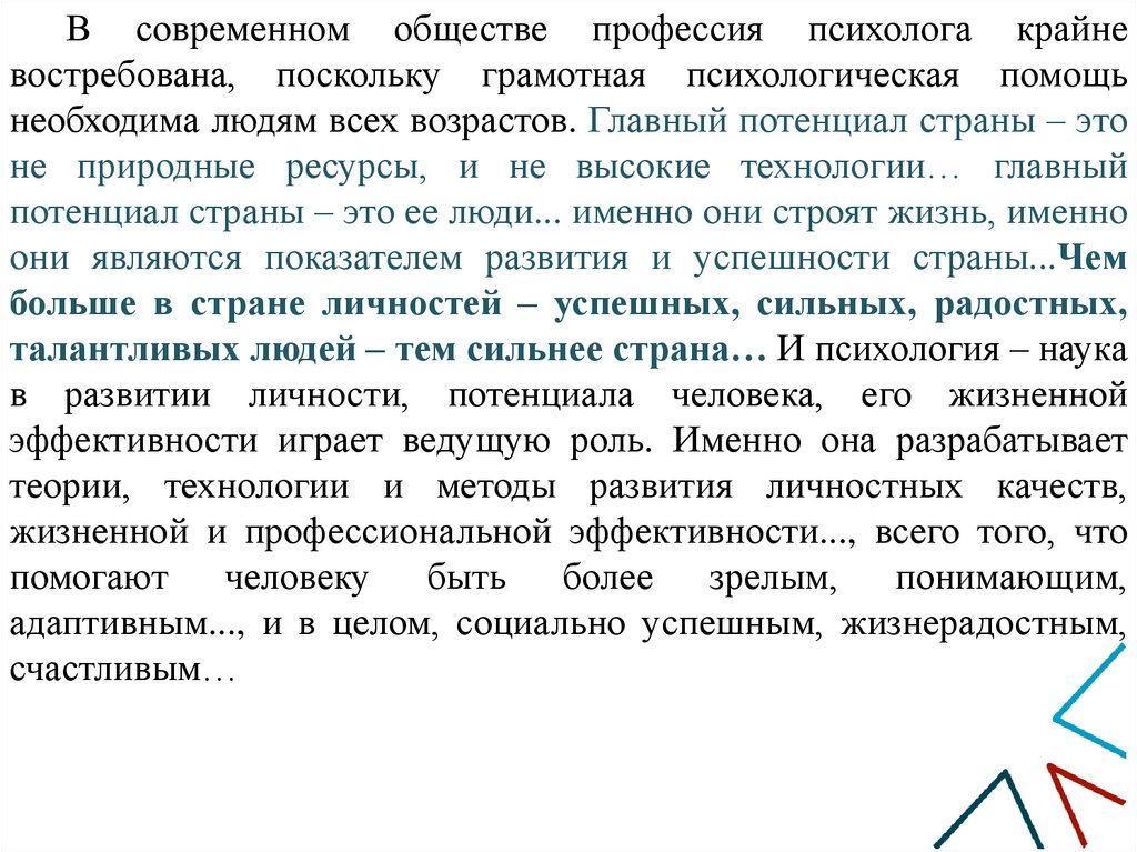 В современном обществе профессия психолога крайневостребована, поскольку грамотная психологическая помощь