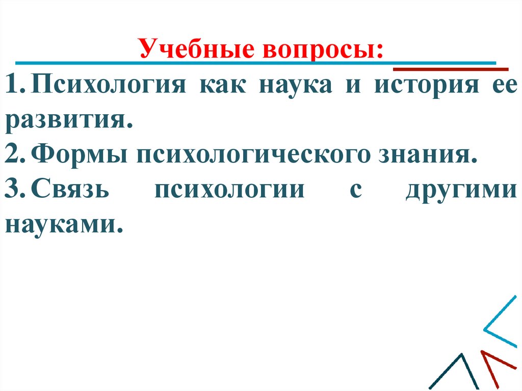 Учебные вопросы:1. Психология как наука и история ее