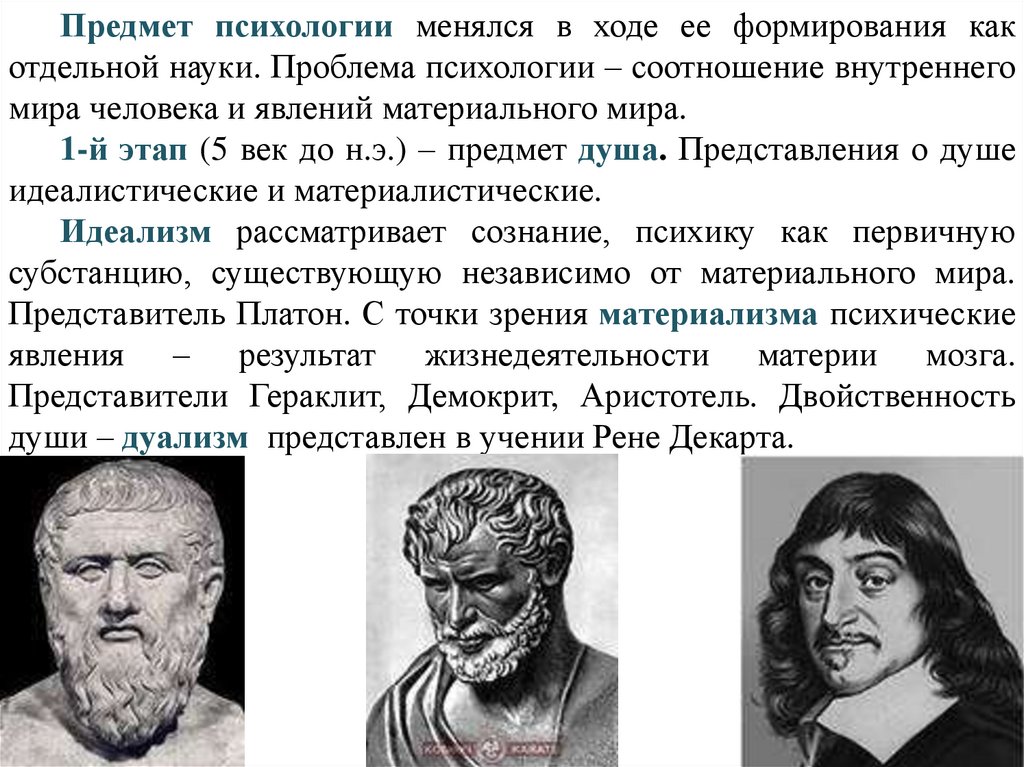 Представитель Платон. С точки зрения материализма психические