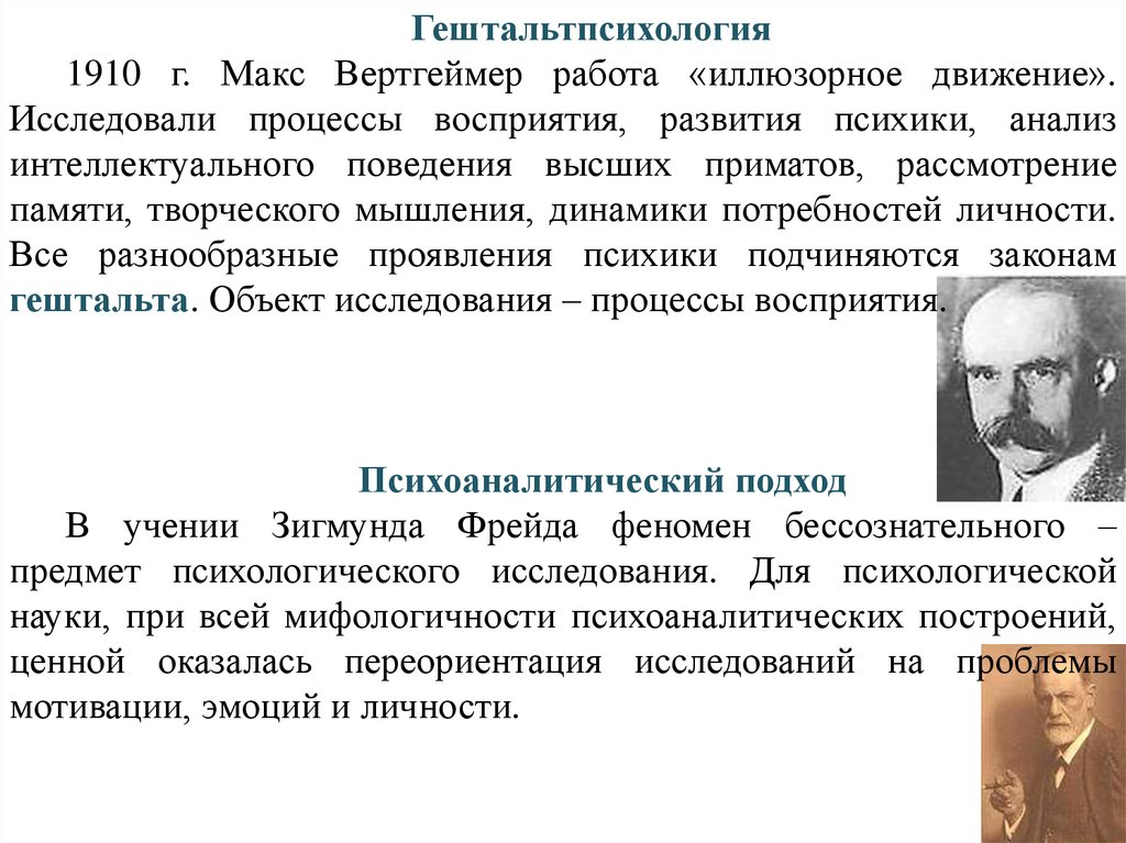 Гештальтпсихология – Вольфганг Келер, Макс Вертгеймер.