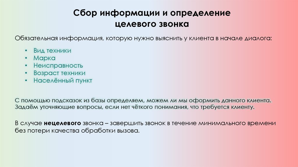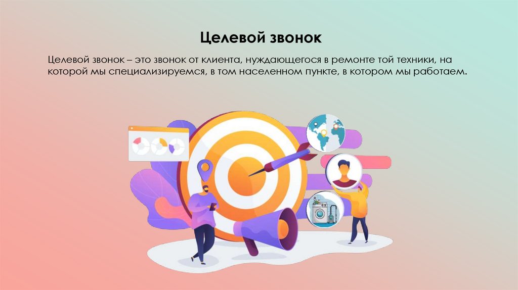 Целевой звонокЦелевой звонок – это звонок от клиента, нуждающегося в ремонте той техники, на