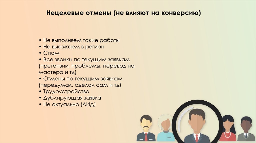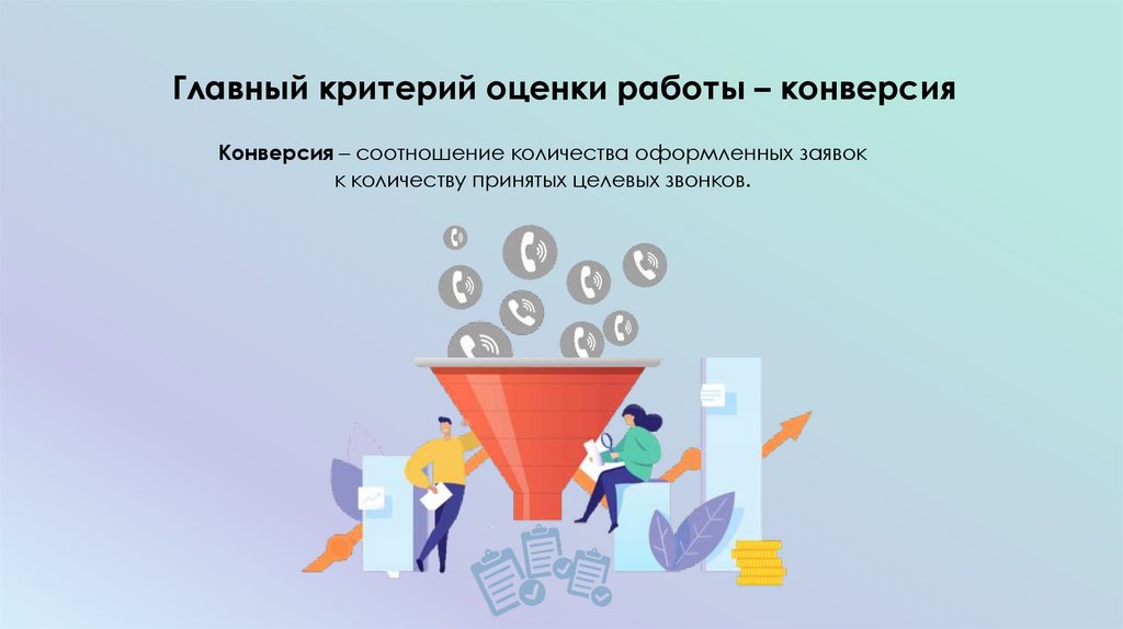 Главный критерий оценки работы – конверсияКонверсия – соотношение количества оформленных заявок