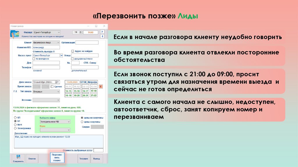 «Перезвонить позже» ЛидыЕсли в начале разговора клиенту неудобно говорить