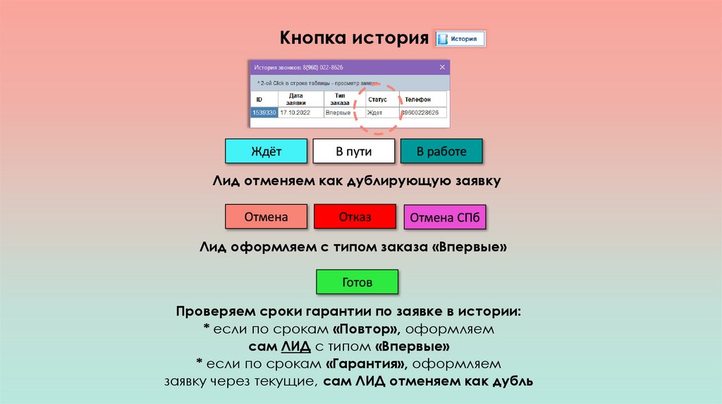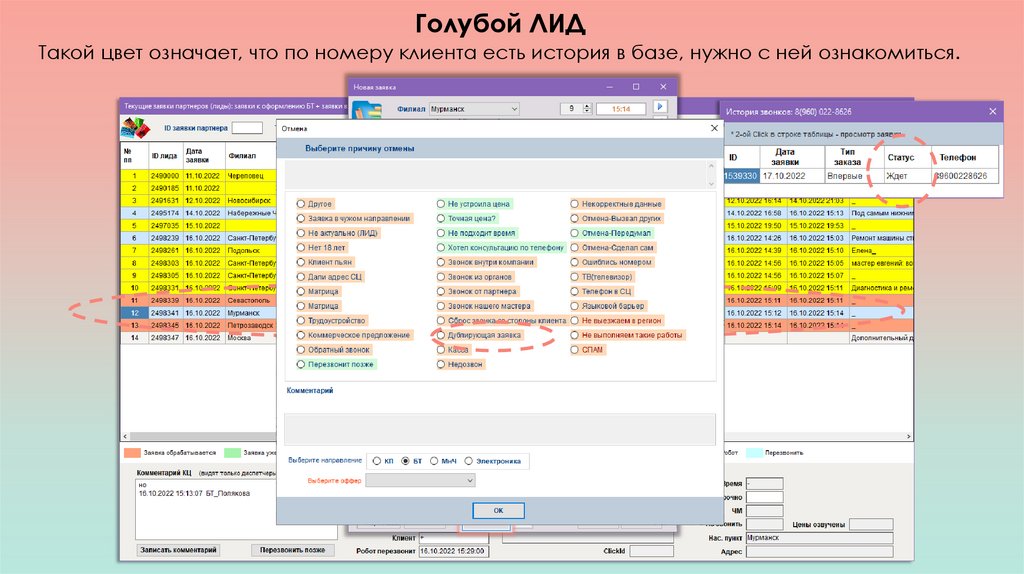 Голубой ЛИДТакой цвет означает, что по номеру клиента есть история в базе, нужно с ней ознакомиться.